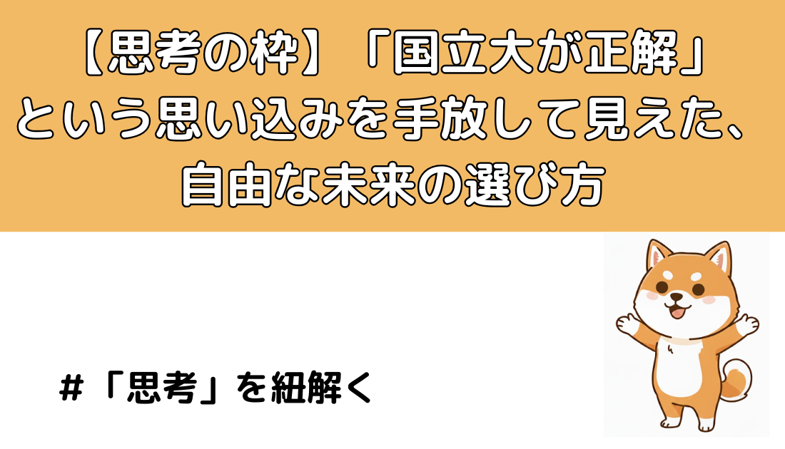 もし当時、もっとフラットで広い視点を持っていたら、私は別の道を選んでいたかもしれません。目先の「国立」という枠に縛られ、本当の意味で自分に合った環境を探そうとする視点が欠けていたからです。